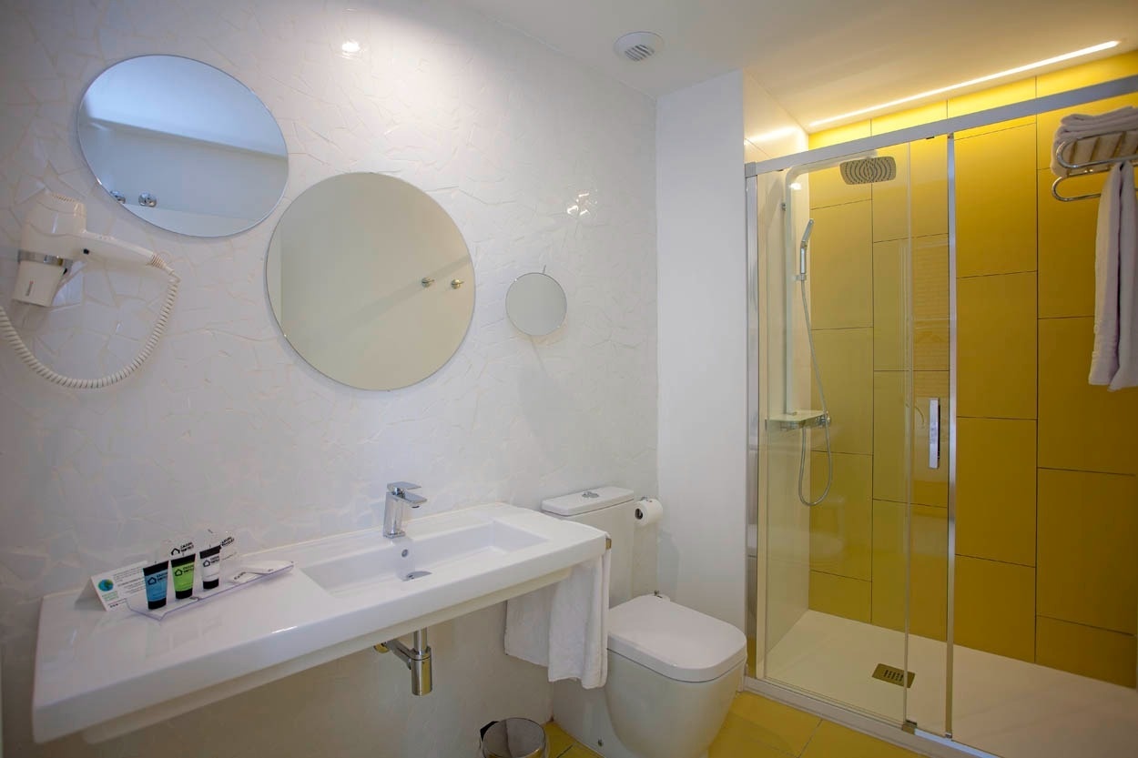 Siéntete como una estrella, y disfruta de una nueva dimensión, espacio para soñar desde 18,5m2, con mejores vistas y más servicios. Cuenta con wifi gratuito, baño completo con amenities VIP, smart TV 43", cafetera de cápsulas, minibar, caja fuerte, secador, sofá, planchador individual. Carta de almohadas y plancha del pelo disponibles en recepción.