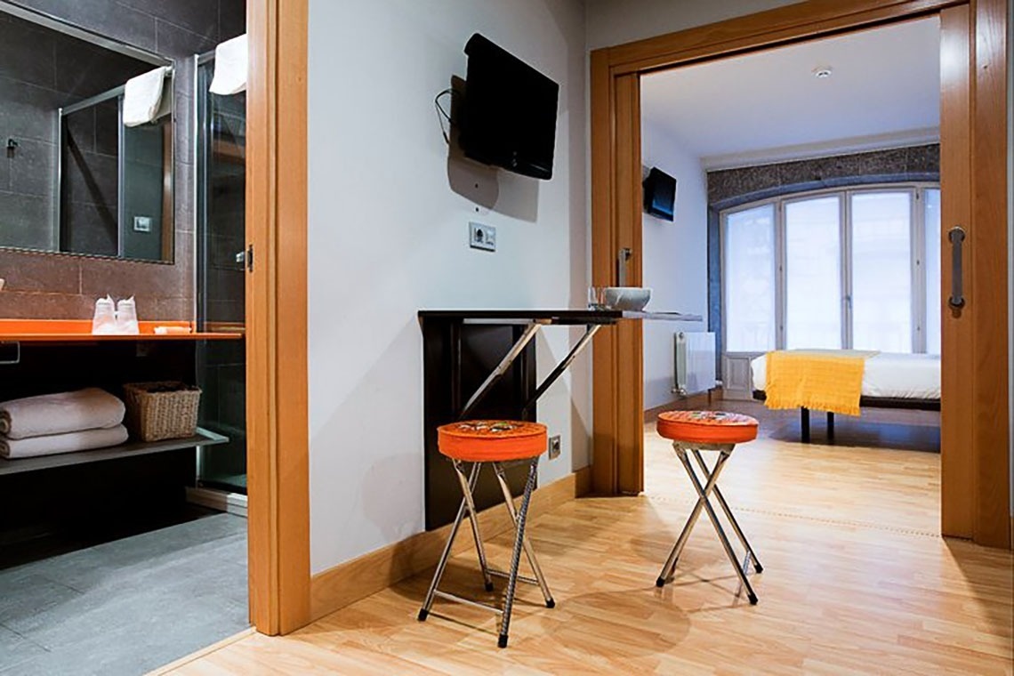Hier, in der Calle Bidebarrieta, nur einen Katzensprung von der Ría und der Puente del Arenal entfernt, schlafen Sie nicht nur: Sie wohnen in einer Hommage an die großen baskischen Komponisten. Jedes meiner 9 Zimmer trägt den Namen eines berühmten lokalen Musikers und ist so ausgestattet, dass Ihr Aufenthalt so angenehm wie eine wohlklingende Symphonie wird: eigenes Bad mit Regendusche, 32-Zoll-Fernseher, kostenloses WLAN, Safe, Heizung, Haartrockner, Kühlschrank, Mikrowelle und ein Kaffee- oder Teekit, um Sie morgens zu inspirieren.