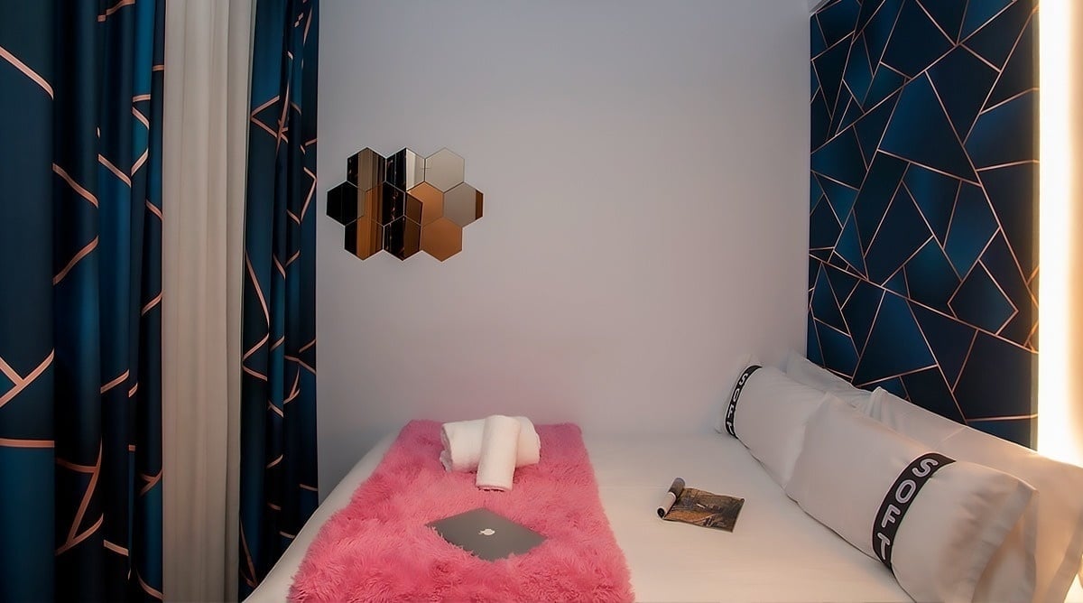 Hier gibt es nichts Standardmäßiges. Ich habe einen Chill-Out-Bereich, in dem du dich wie zu Hause entspannen kannst (aber besser), einen Coworking-Bereich für die Cracks, die auch im Urlaub nicht aufhören, und eine so einzigartige Einrichtung, dass sie direkt aus dem Feed von Koi Samsa (ja, dieser Influencerin) stammen könnte.