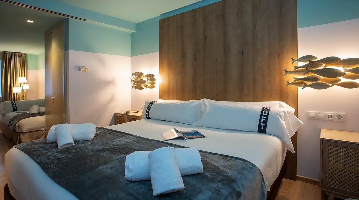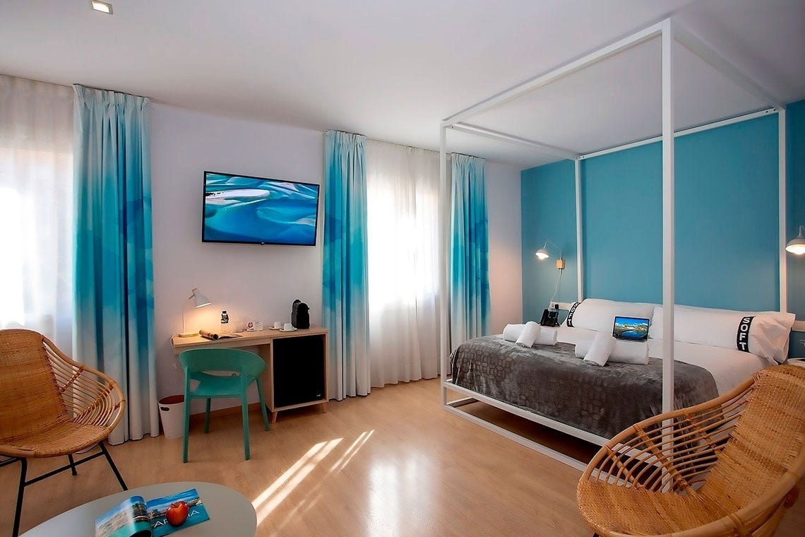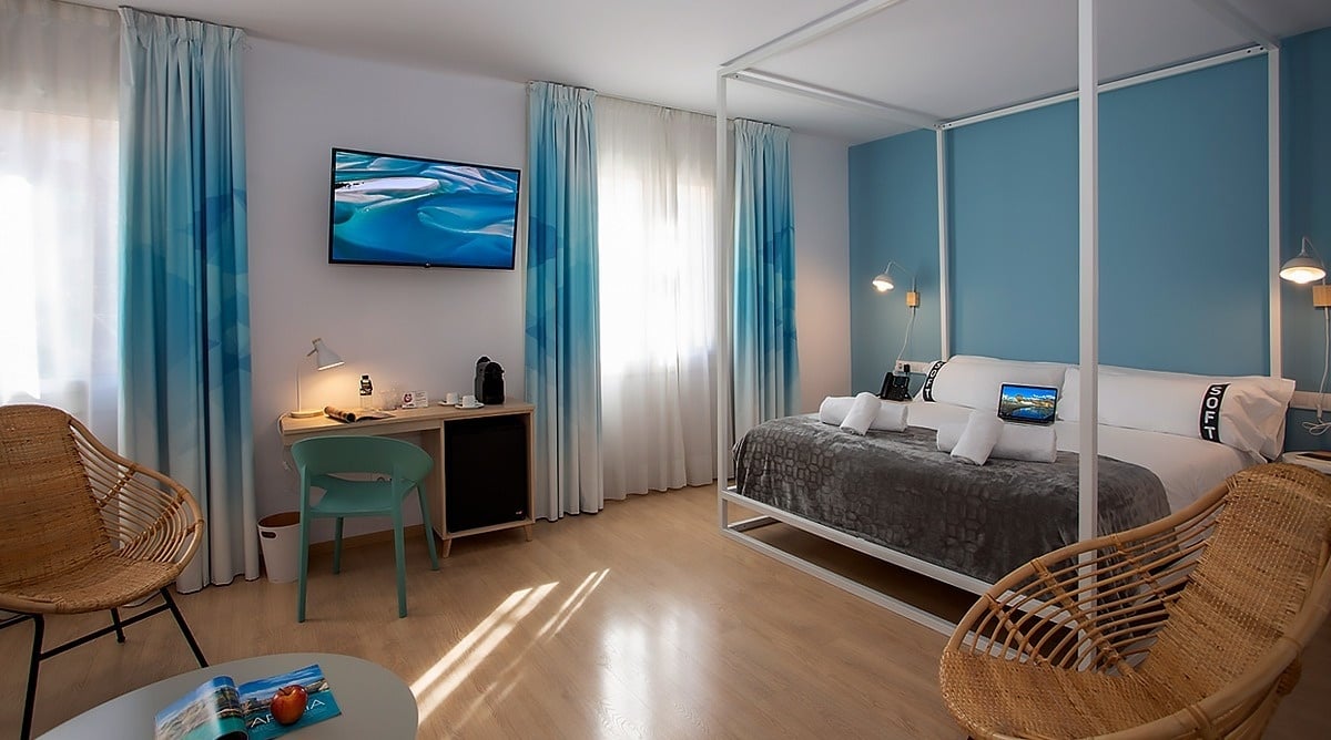Zimmer mit Klimaanlage und so bequemen Betten, dass du sie am liebsten mit nach Hause nehmen würdest.