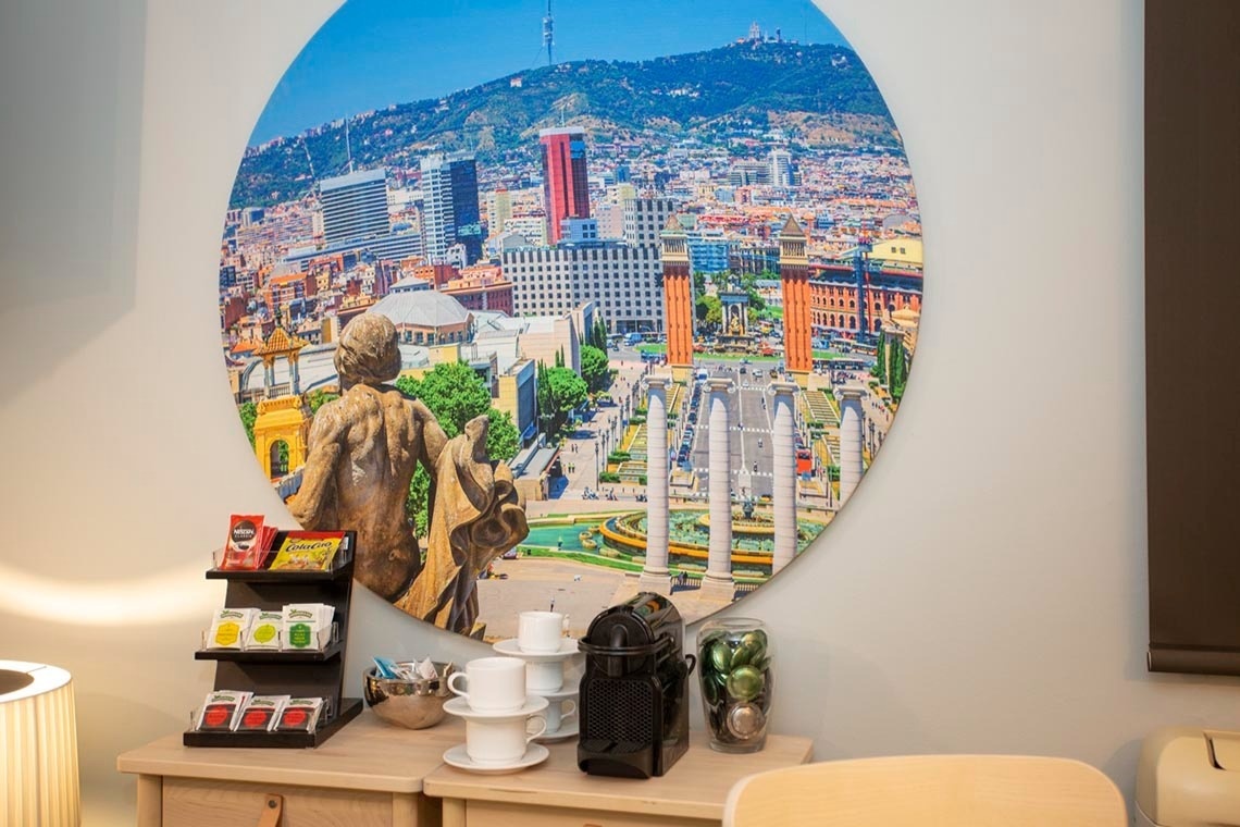 Ich befinde mich an einem so strategischen Ort, dass selbst Google Maps mir Beifall spendet. Nur wenige Schritte von der Avinguda Diagonal und der Messe entfernt und nur 10 Gehminuten vom Bahnhof Sants.