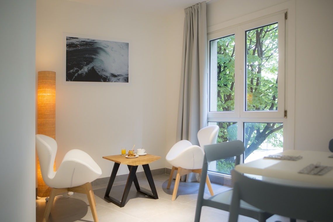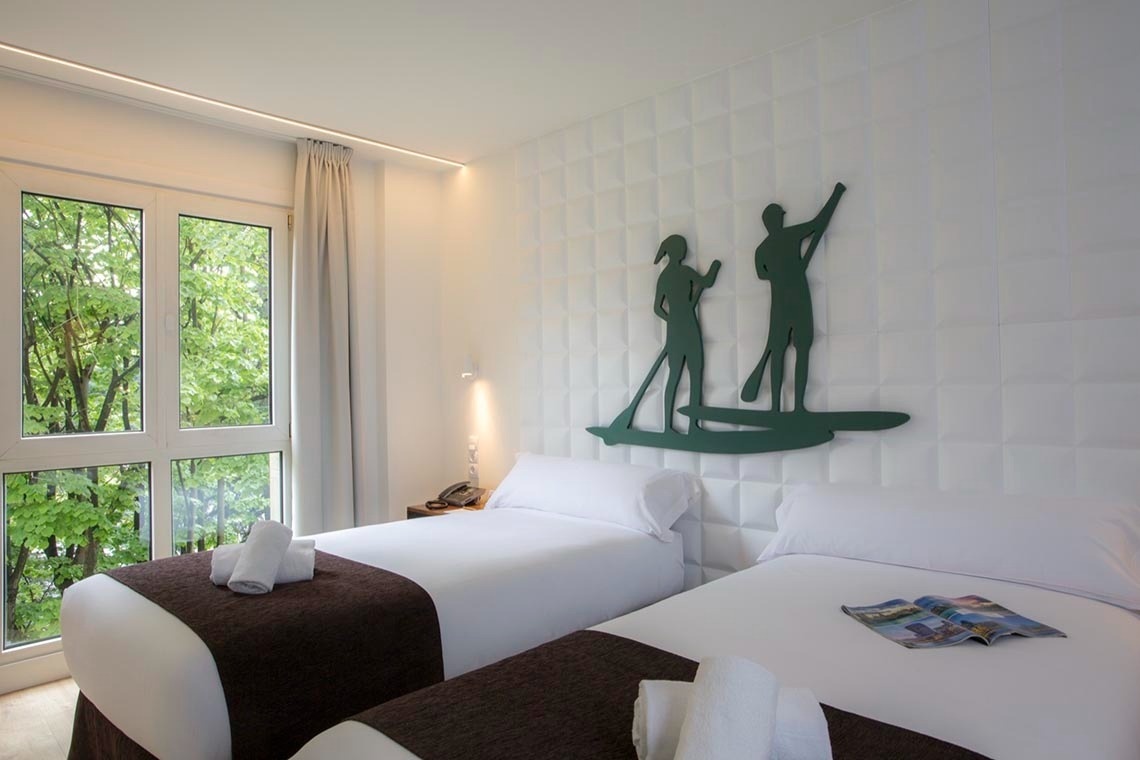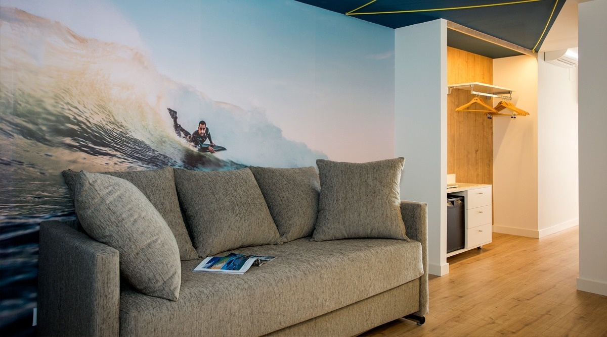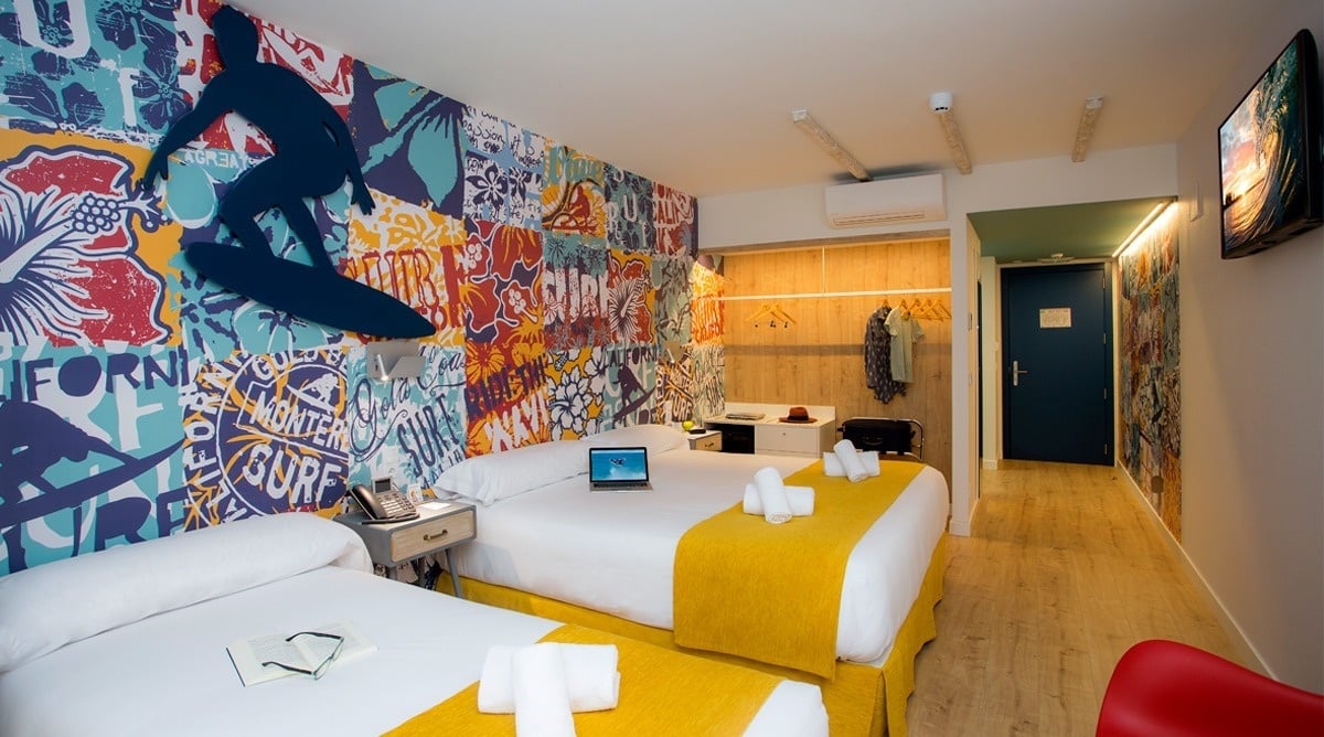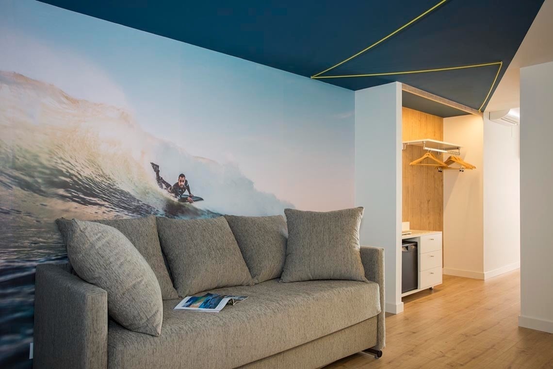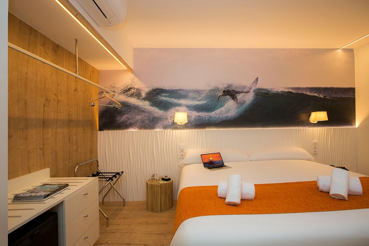 Stellen Sie sich eine Mischung aus einer baskischen Trainera (Ruderboot) und einem Surfbrett vor: Das sind wir! Jedes Zimmer ist ein Fest aus Farbe und Originalität, mit Themen, die Ihnen das Gefühl geben werden, als würden Sie über die sieben Weltmeere segeln oder eine Welle am Gros Strand surfen.