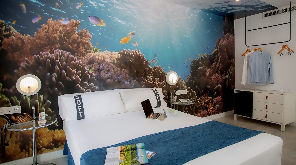 Das Zimmer ist vom Meer und dem Meeresgrund inspiriert. Es verfügt über ein Badezimmer mit Haartrockner.