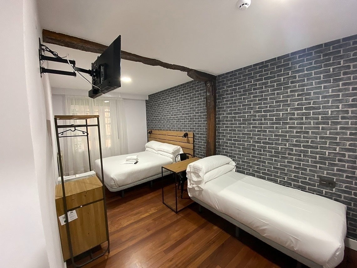 Erkunden Sie die Altstadt von Bilbao, auch bekannt als Casco Viejo oder die Sieben Straßen. Entdecken Sie ihr industrielles Erbe und die neuen Sehenswürdigkeiten, die sie zu einer Kulturhauptstadt gemacht haben. Genießen Sie Ihren Aufenthalt in unserem Dreibettzimmer. Es bietet kostenfreies Highspeed-WLAN und einen Flachbildfernseher mit internationalen Kanälen. Das Badezimmer ist mit einem Haartrockner und einer Dusche ausgestattet. Alle Zimmer verfügen über Heizung, Ventilatoren, 28 cm dicke Matratzen und einen Schreibtisch.