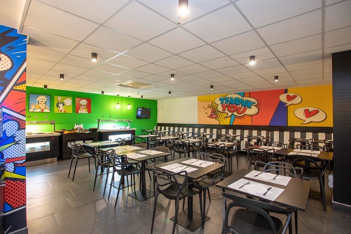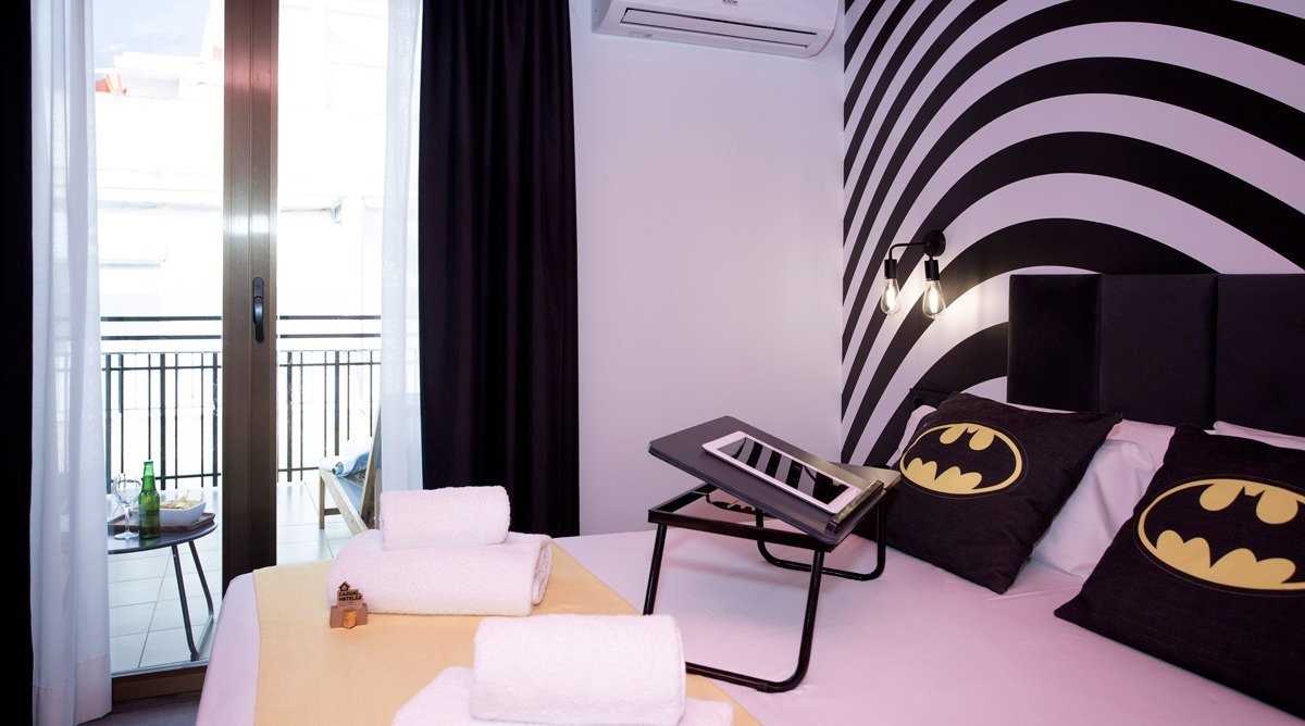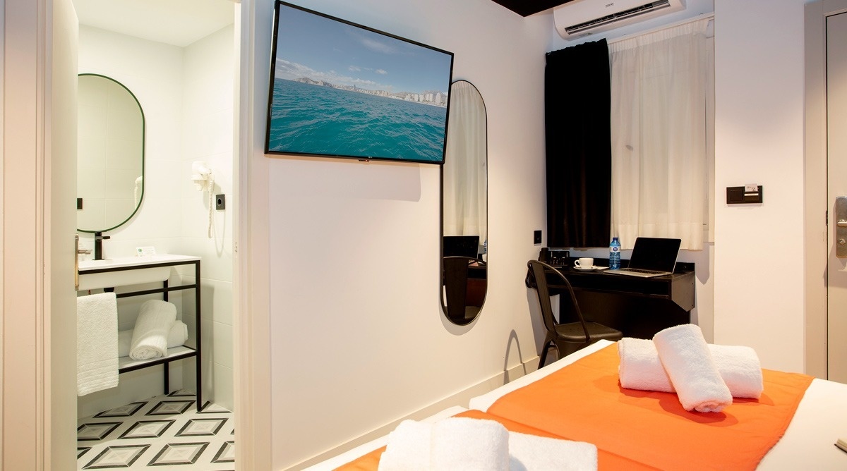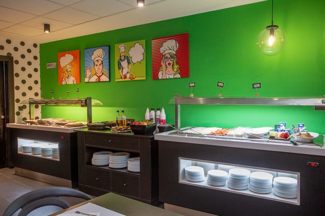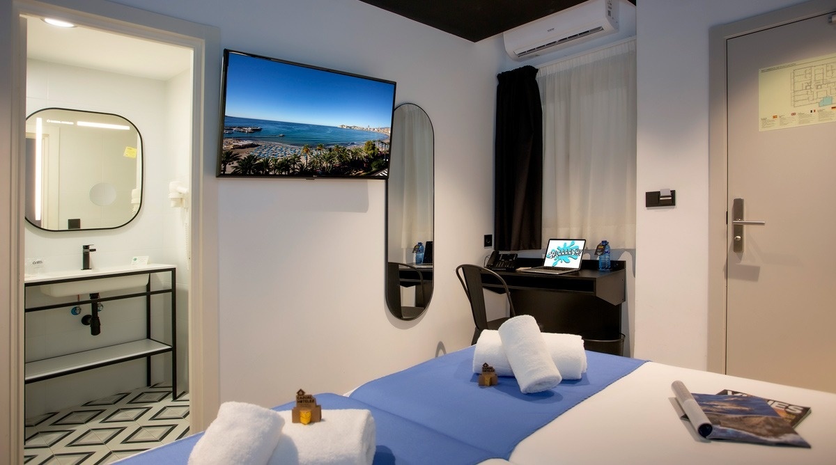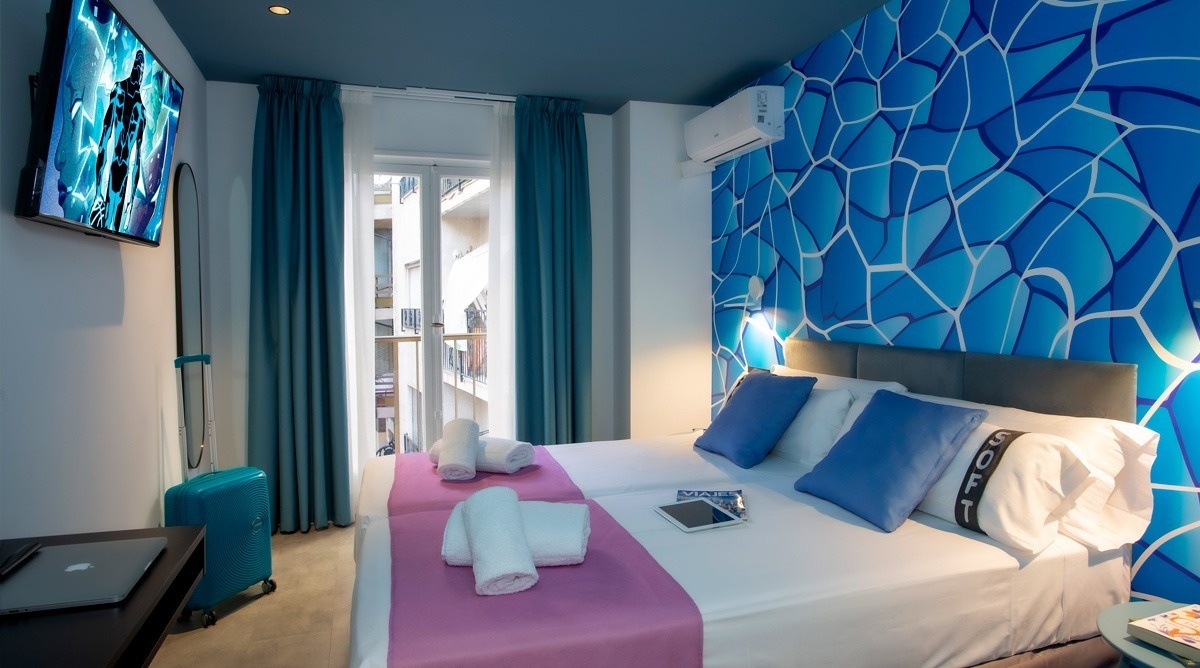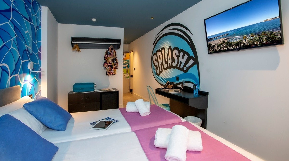 Ich bin das erste Kunsthotel in Benidorm, und meine Seele ist mit den lebendigen Farben der Pop-Art-Bewegung bemalt. Meine Wände erzählen Geschichten mit Anspielungen auf bahnbrechende Kunst, während meine Gemeinschaftsbereiche ein visuelles Spielfeld sind, wo das Mittelmeer auf die Popkultur trifft. Ich bin ein „WOW!“-Erlebnis!