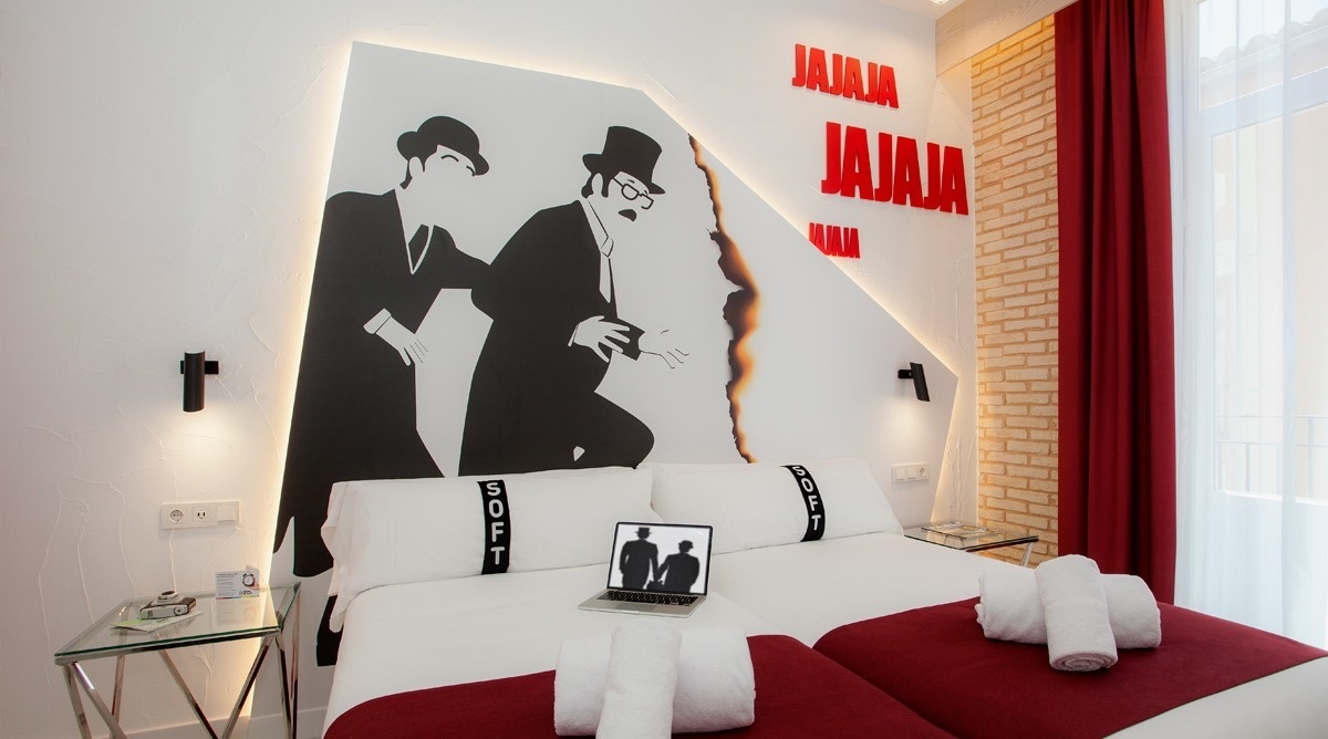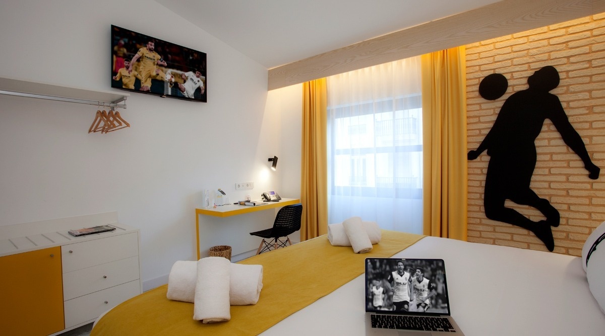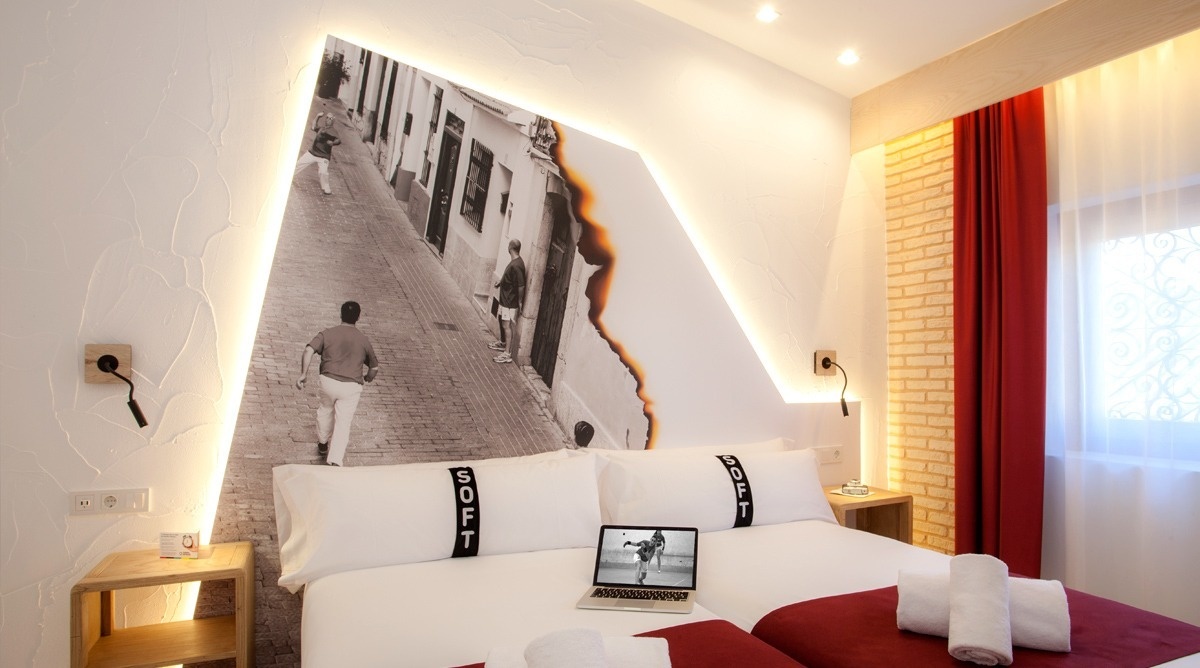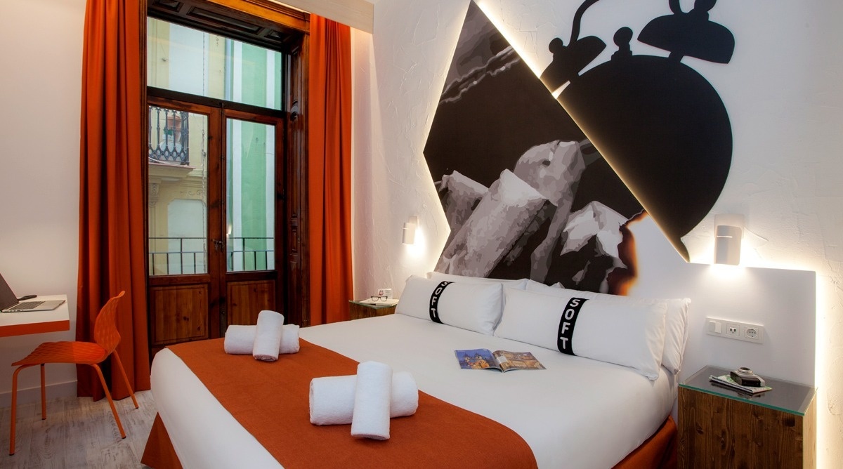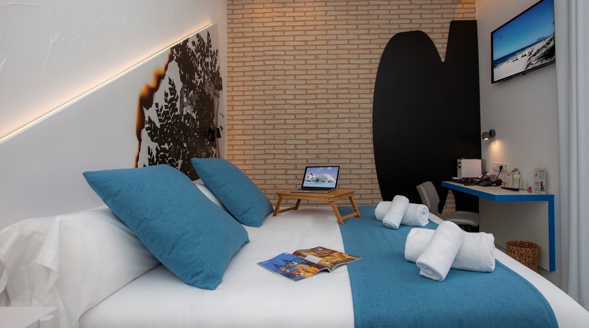 Hier kommst du nicht nur zum Schlafen her; du kommst, um ein Erlebnis zu leben. Meine 35 Zimmer sind darauf ausgelegt, dich in die Essenz Valencias eintauchen zu lassen. Jedes erzählt eine Geschichte: von den Feuern der Fallas über die einzigartigen Aromen unserer Gastronomie bis hin zu Persönlichkeiten, die reine valencianische Essenz sind. Überraschende Wandbilder, einzigartige Details und eine Atmosphäre, die dir das Gefühl gibt, als würde dich ganz Valencia umarmen (ohne zu bedrängen, natürlich).
