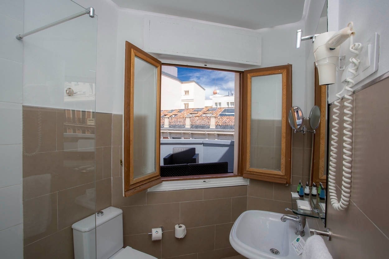 Space to dream from 15m2 , double room with double bed and terrace. It has free wifi, air conditioning/heating and LED television. Bathroom with amenities and hair dryer. Pillow menu, hair straightener and professional hairdryer available at reception. Open the curtain and feel like the protagonist surrounded by the great musicals and international theaters.
