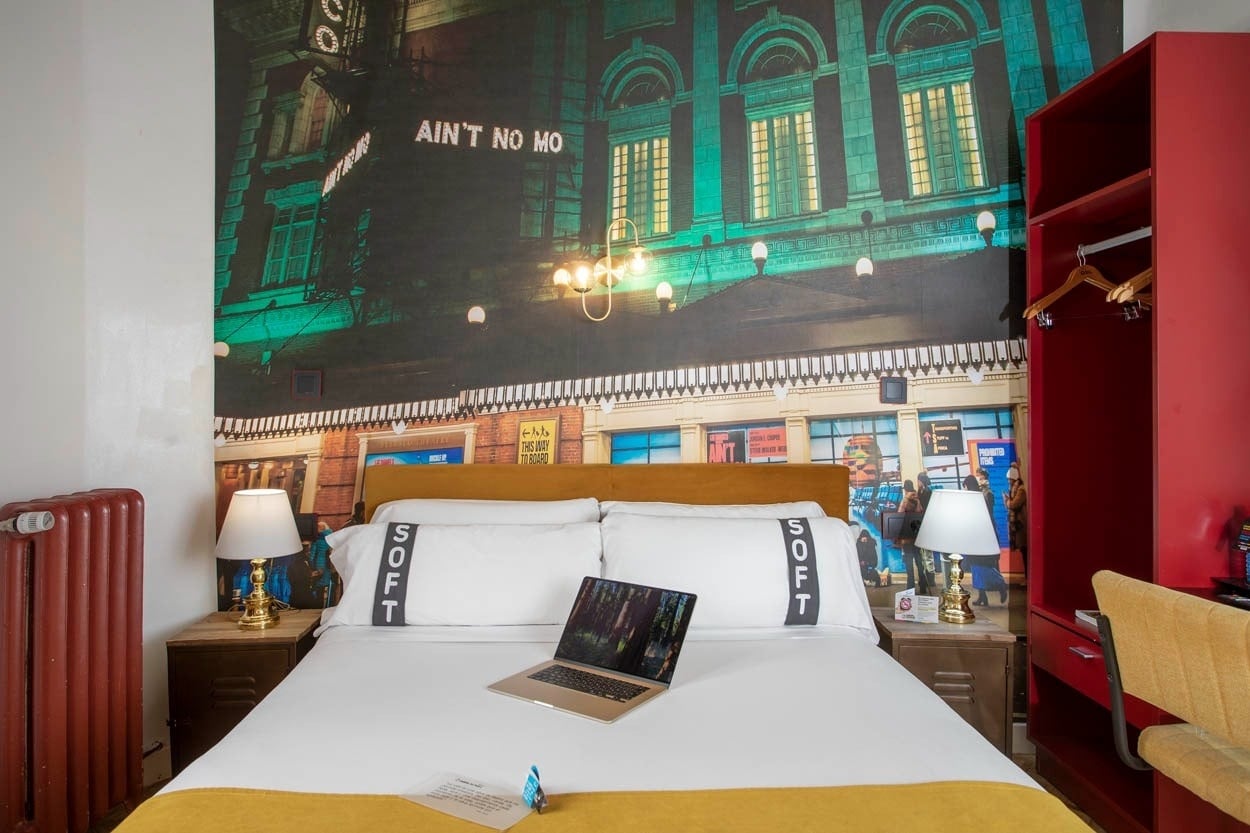 Space to dream from 21m2 , double room with two beds. It has free wifi, air conditioning/heating and LED television. Bathroom with amenities and hair dryer. Pillow menu, hair straightener and professional hairdryer available at reception. Open the curtain and feel like the protagonist surrounded by the great musicals and international theaters.