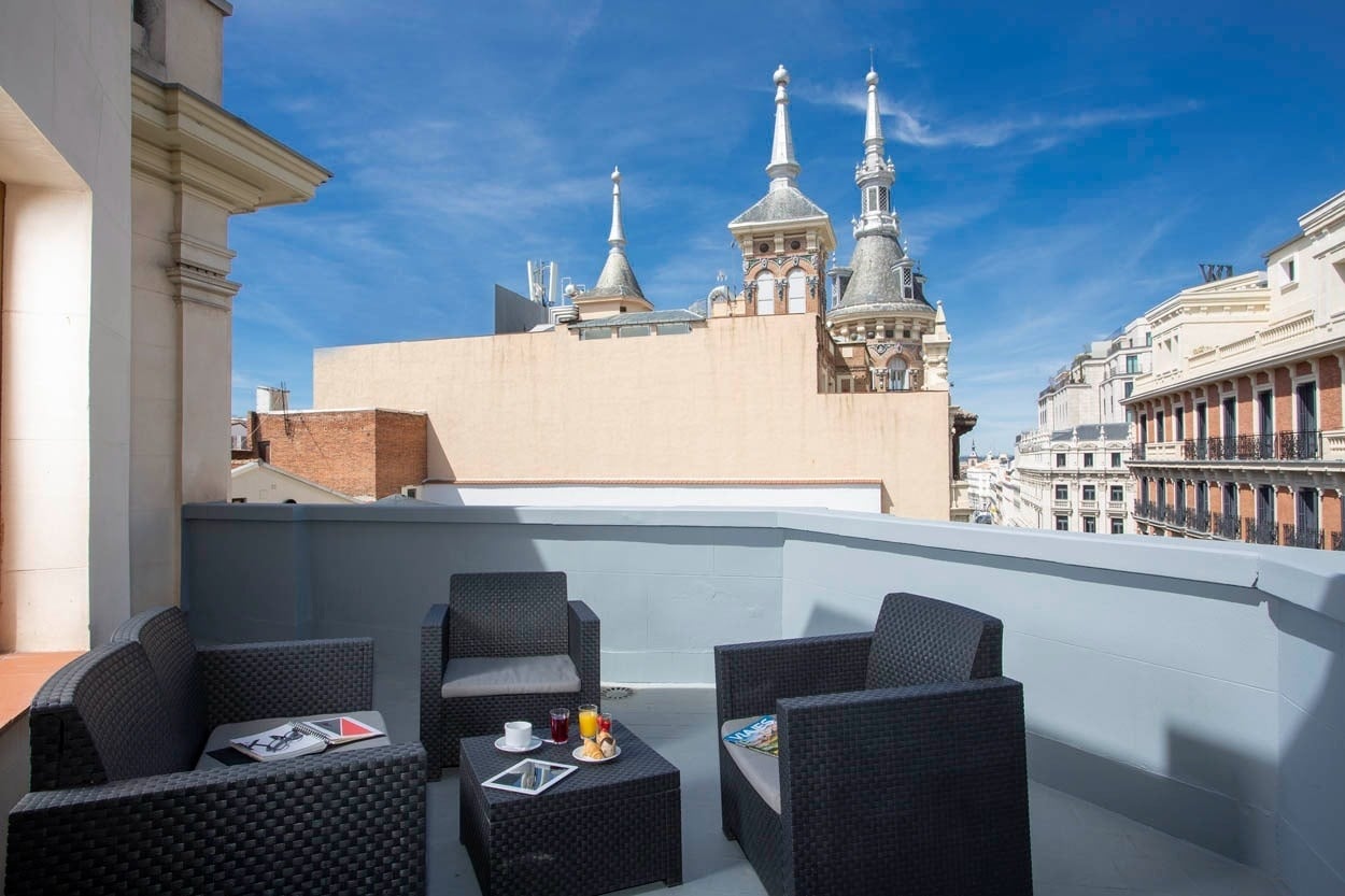 Read more Read less Everyone, pay attention to the scenery! We're located at the epicenter of drama and comedy: just 300 meters from Puerta del Sol, where Madrid pulses to the rhythm of applause. From here, you have direct access to the great theaters of Gran Vía, Plaza Santa Ana, and cultural gems like the Prado Museum and the Thyssen-Bornemisza Museum (both less than a 10-minute walk away).