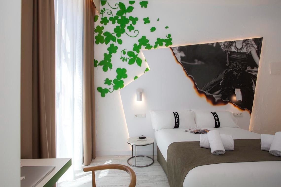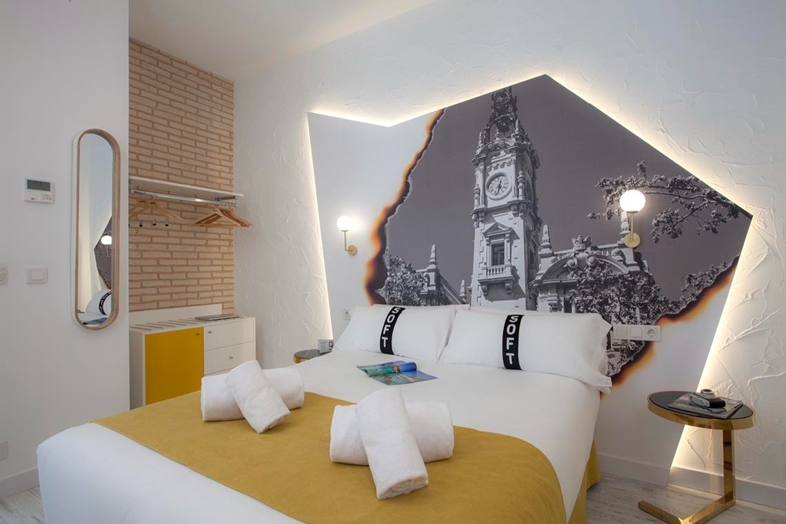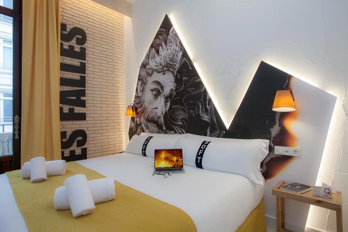 You don't just come here to sleep; you come here to experience something. My 35 rooms are designed to immerse you in the essence of Valencia. Each one tells a story: from the fireworks of the Fallas festival to the unique flavors of our cuisine and characters who embody the pure essence of Valencia. Striking murals, unique details, and an atmosphere that will make you feel as if the whole of Valencia is embracing you (without the crowds, of course).