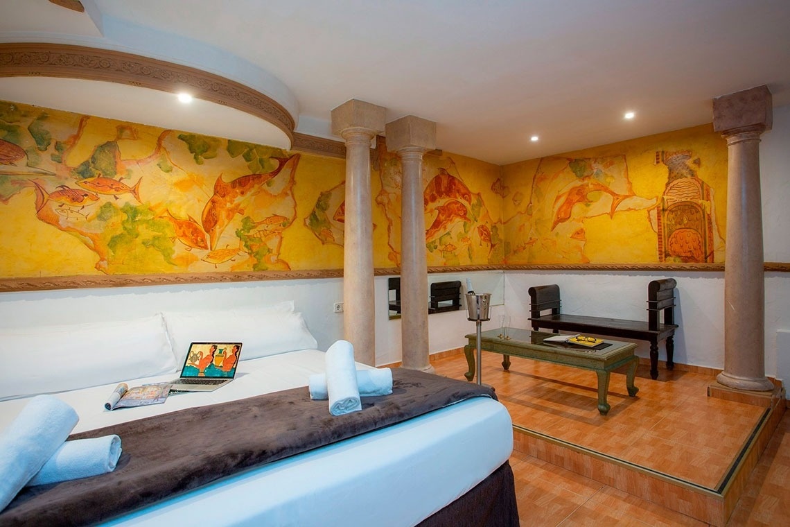 Haal inspiratie uit de belangrijkste rijken in de geschiedenis om je meest romantische avond voor te bereiden. Grote Suite Deluxe-kamer met jacuzzi. Beschikt over gratis WiFi, airconditioning en een led-tv met nationale en internationale zenders. Eigen badkamer met jacuzzi, toiletartikelen en een haardroger.