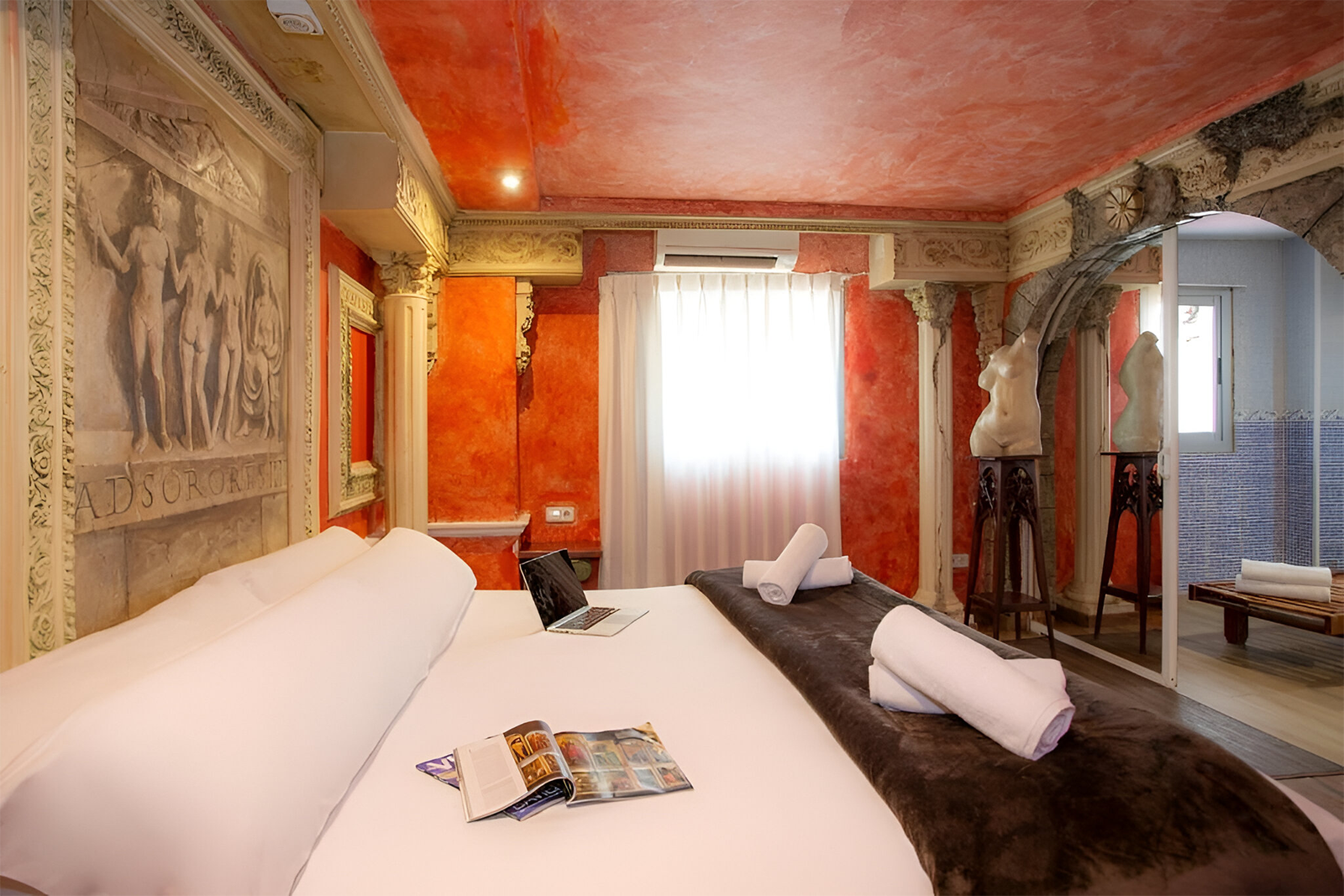 Haal inspiratie uit de belangrijkste rijken in de geschiedenis om je meest romantische avond voor te bereiden. Vierpersoonskamer. Beschikt over gratis WiFi, airconditioning en een led-tv met nationale en internationale zenders. Eigen badkamer met toiletartikelen en een haardroger.