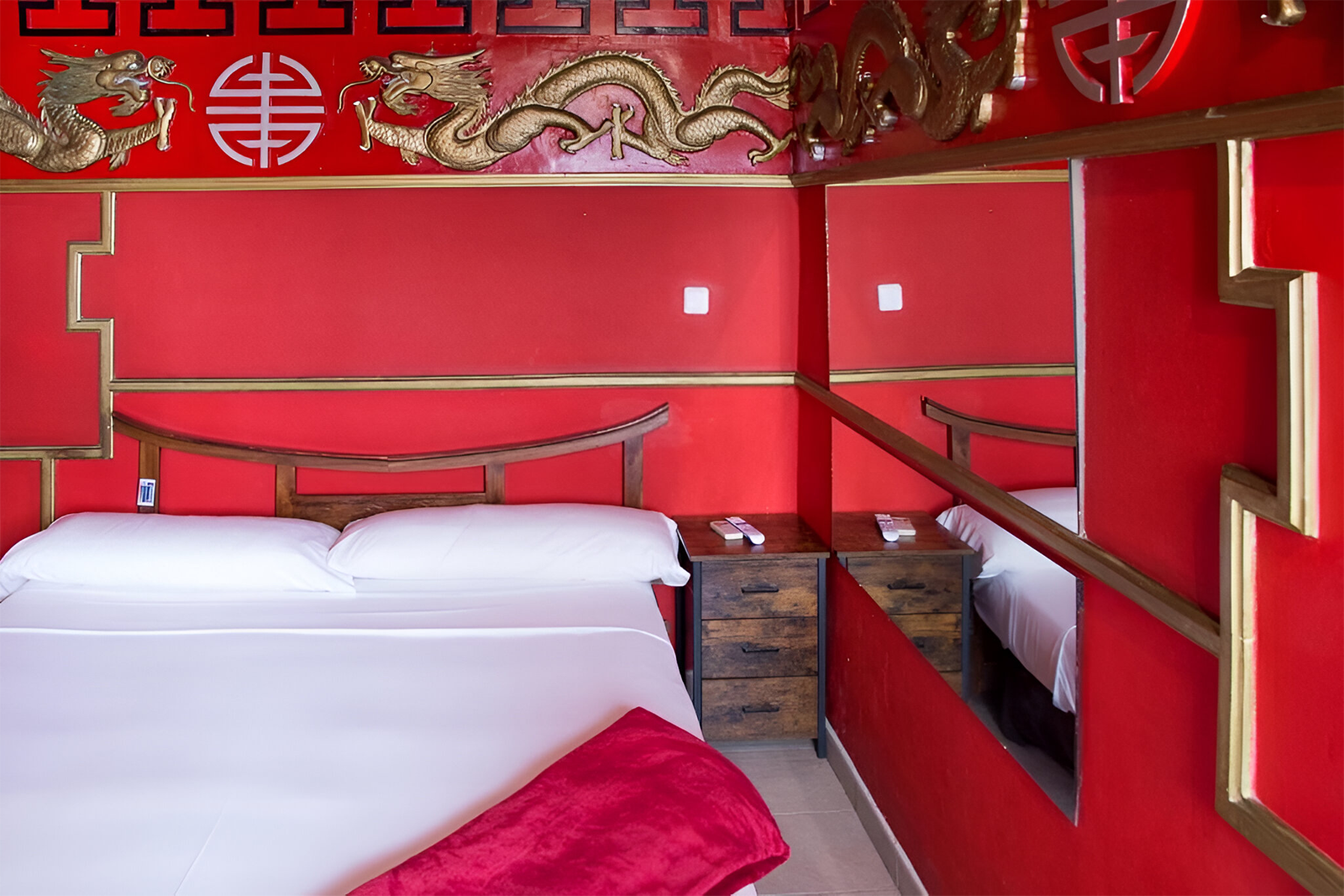 Hier geen saaie kamers of zielloze witte muren. Elk van mijn kamers is een reis op zich. Je kunt wakker worden in het oude Egypte, het klassieke Griekenland en... wie weet, misschien wel in het keizerlijke China!